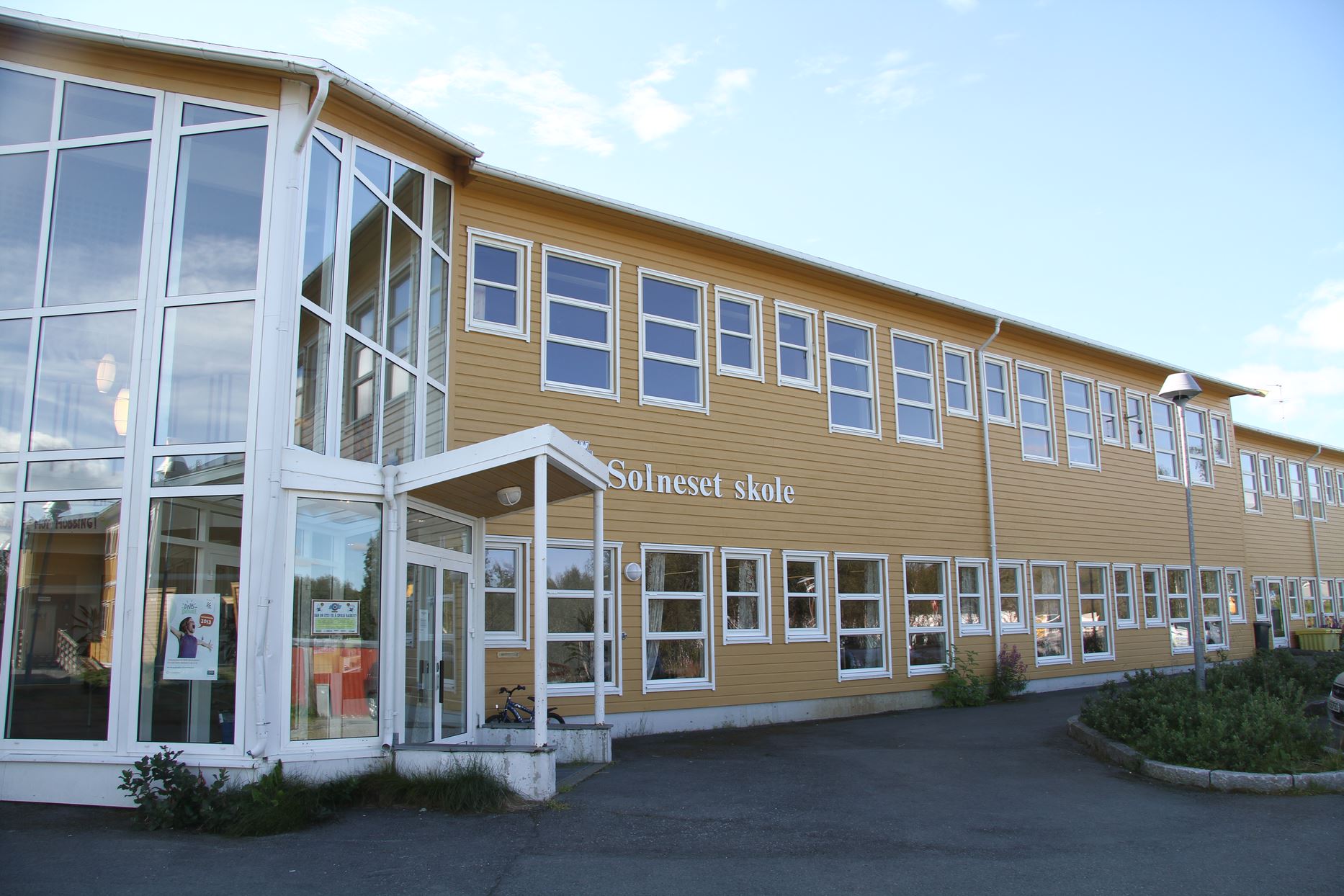 Solneset skole ligger i bydelen Hamna, nordvest på Tromsøya, i underkant av ti minutters bilkjøring nordover fra Giæverbukta.