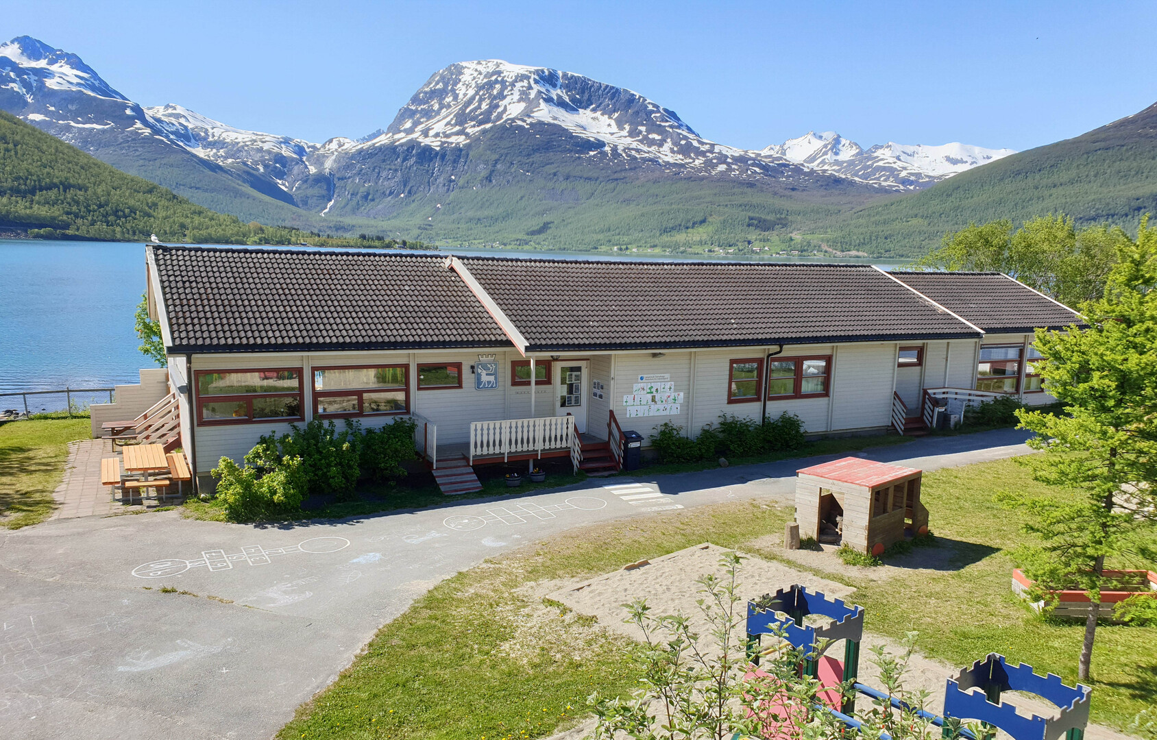 Barnehagen ligger ved foten av Lyngsalpene innerst i Ullsfjorden. Vi har både fjæra og skogen i umiddelbar nærhet og er ofte på tur i nærområdet. Utenfor barnehagen har vi en naturlekeplass med gapahuk som vi kaller Jungelstedet.