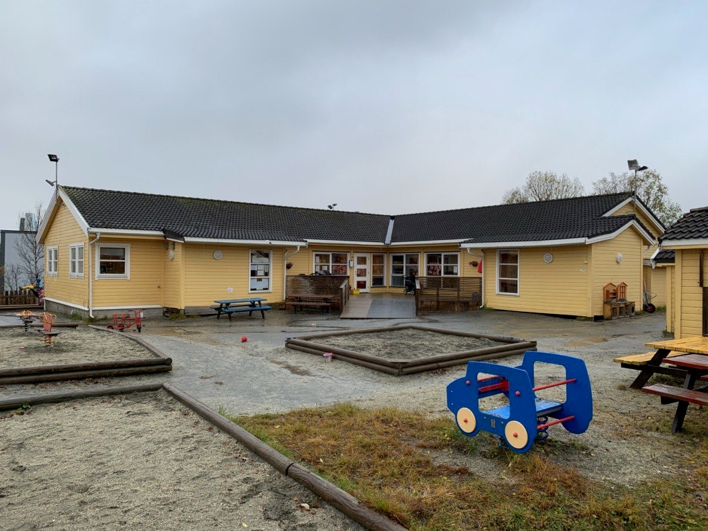 Utenfor barnehagen har vi lekeapparater, leketårn og grillhytte.
