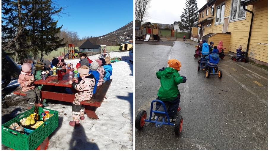 Barnehagen ligger ved foten av Tromsdalstinden med utsikt over Tromsøysundet. I nærområdet har vi naturen som vi flittig bruker når vi er på tur.