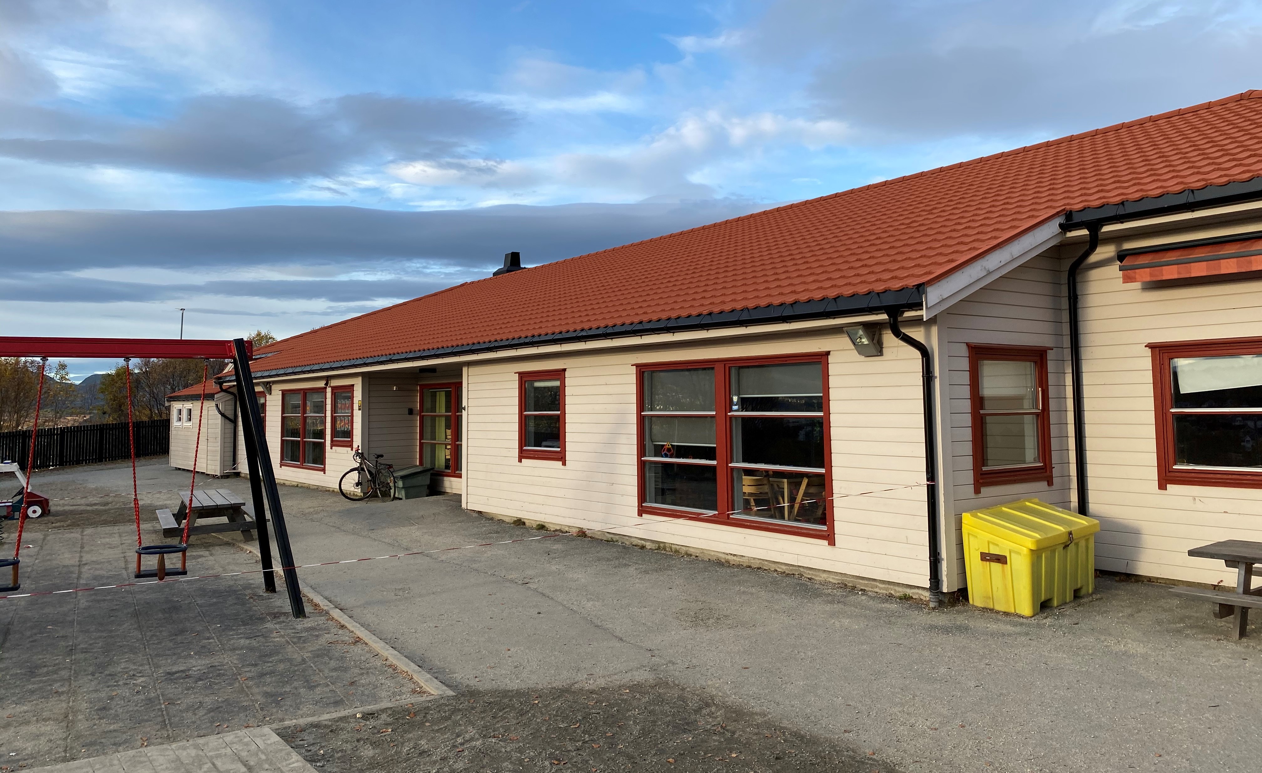 Utenfor barnehagen har vi sandkasse, akebakke, grillhytte, klatretrær og lekeapparater. Vi har også en liten skog bak barnehagen med bålplass og benker.