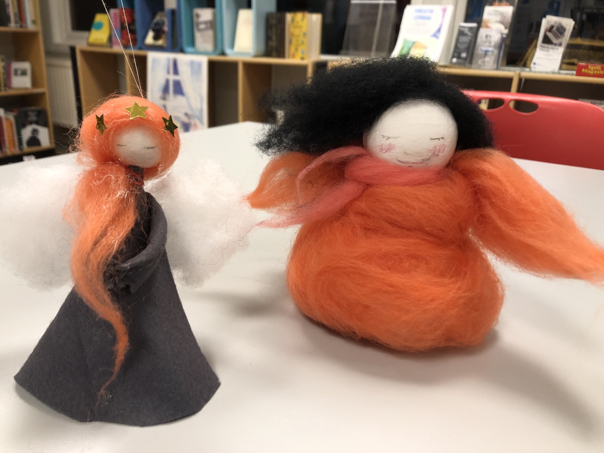 Mellom 16:45 og 18:45 kan du komme og lage din egen variant av en filt-engel! Vi har vatt, filtenåler og ull og det du ellers måtte trenge.
