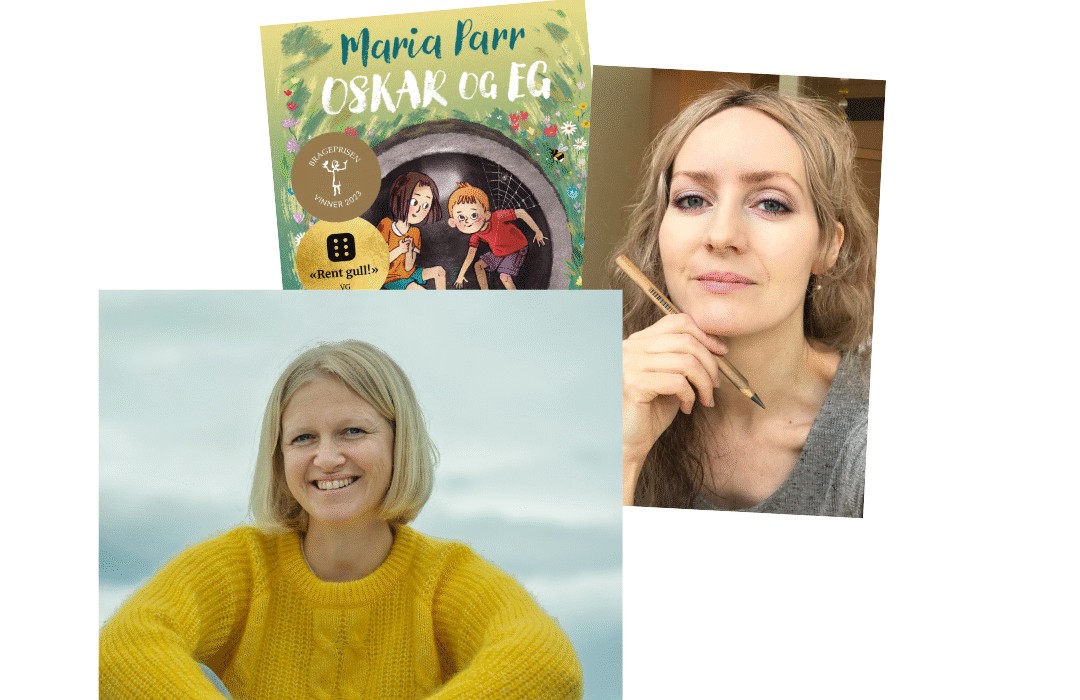 Dere skal også få høre Maria lese et kapittel fra den nyeste boka hennes Oskar og eg. Alle tinga vi har, mens Åshild tegner «live» så det blir vist på storskjerm.