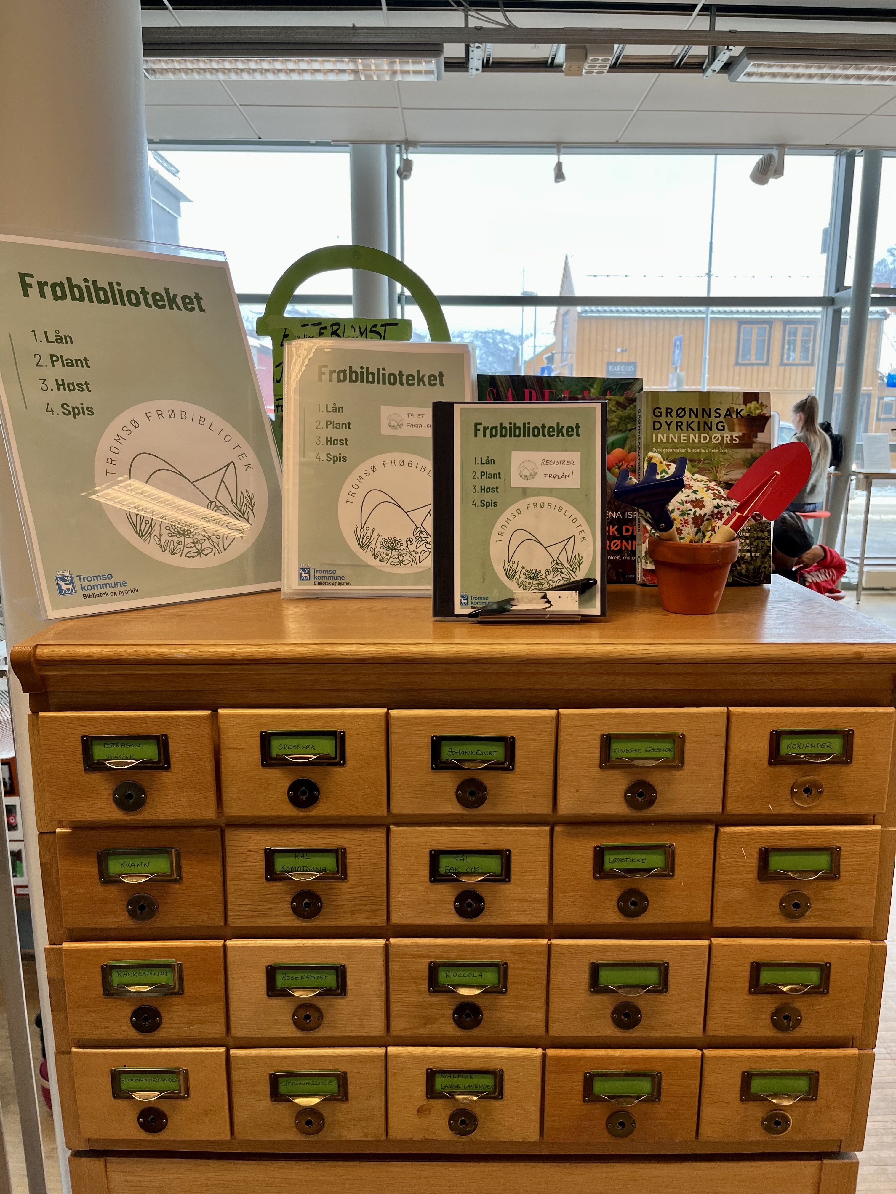Om våren og sommeren kan man låne frø fra Frøbiblioteket. Du registrerer hvilke frøpakker du låner i ei notatbok. Frøbiblioteket finner du på Hovedbiblioteket, plan 0 (ungdomsavdelingen) – i en gammeldags kortkatalog med frøkonvolutter i skuffene. Det er ikke mulig å reservere frø og vi ber om at dere ikke låner mer enn 3 pakker hver. Alt er selvsagt gratis!