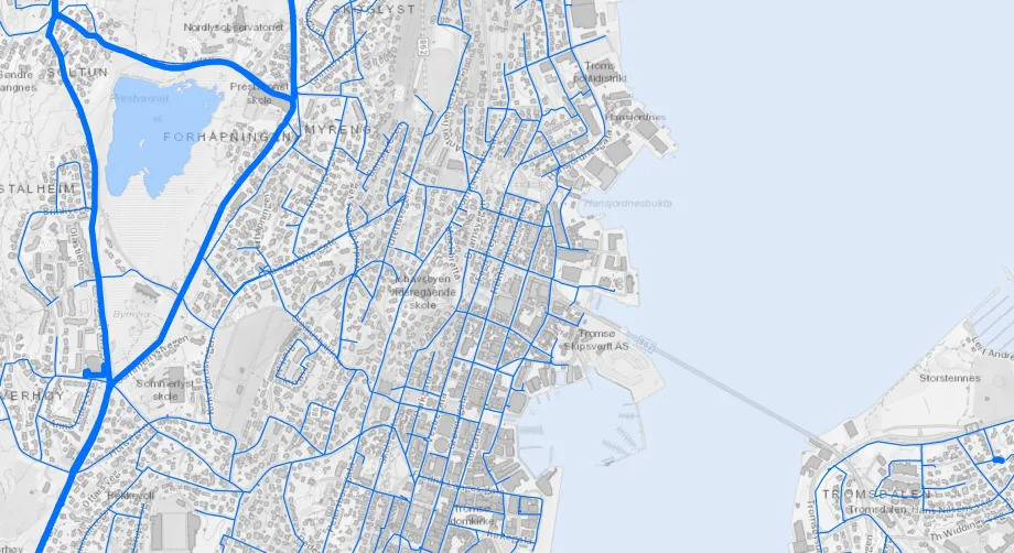 I Tromsø ønsker man å fortette bebyggelsen i stedet for å la byen vokse seg utover et større areal. For oss i seksjon for vann og avløp er dette både en ulempe og en fordel. Utfordringen er at kapasiteten i rørnettet enkelte steder må bygges ut for å levere nok vann til flere forbrukere. Fordelen med byfortetting er at vi trenger færre lange rørstrekk, og kan bruke eksisterende infrastruktur for å betjene flere abonnenter.