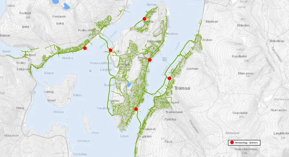 Slik byen utvikler seg kombinert med topografien på Tromsøya, vil vi bli stadig mer avhengige av pumpestasjoner for å håndtere avløpet. I dag har vi 77 pumpestasjoner bare i byområdet. Totalt finnes cirka 115 pumpestasjoner i Tromsø kommune. Der avløp og regnvann havner i samme rørsystem, har vi vært nødt til å lage et overløpssystem slik at pumpene og rensestasjonene ikke blir overbelastet. Fortynnet forurenset vann kan derfor havne rett i havet.