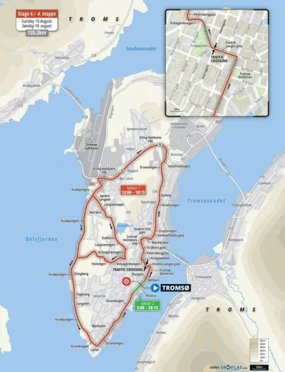 - Kvaløyveien stenges for all trafikk 14:30 til 16:30 i løypetraseen mellom Mellomvegen og Langnesvegen.