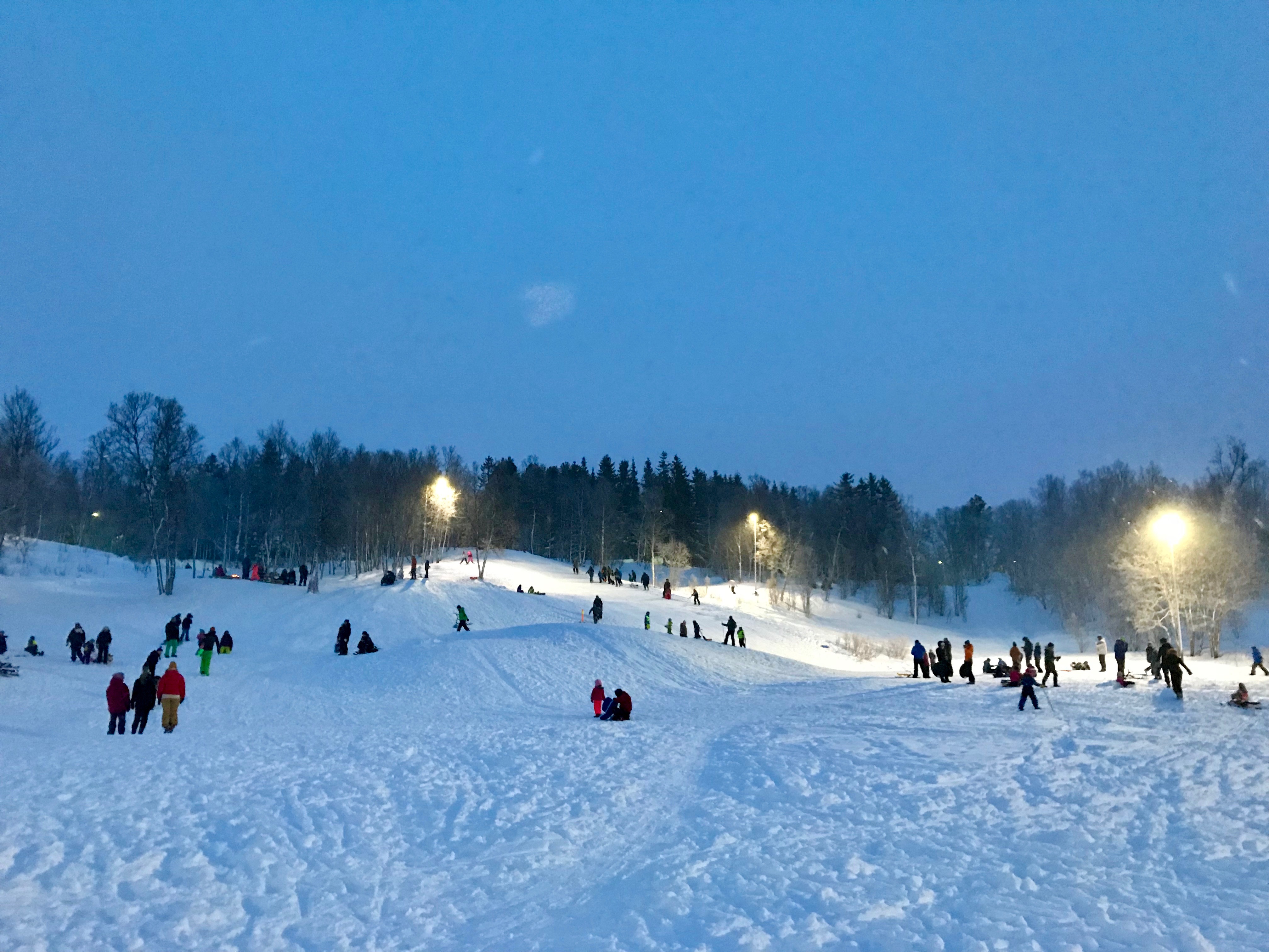 Skøytebanen på Charlottenlund brøytes, vannes og prepareres ved behov.