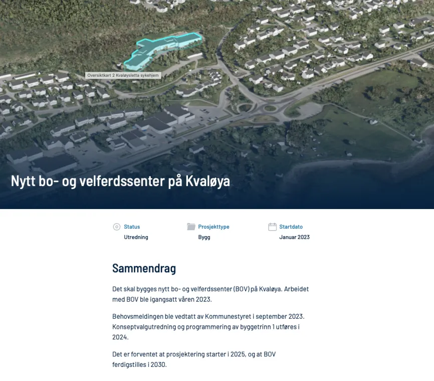 Se status, bakgrunn, sentrale dokumenter om bo- og velferdssenteret på Kvaløya.