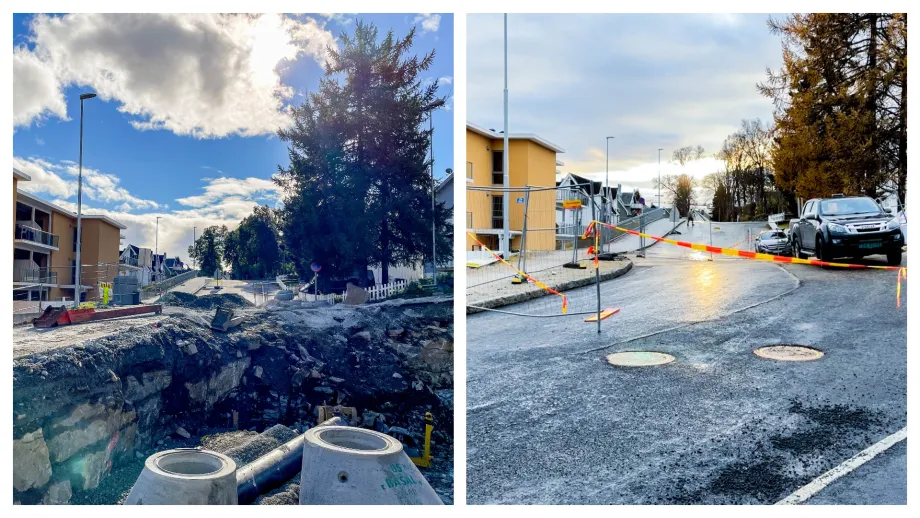 Ett lag står nå i Hagavegen, men i november blir dette arbeidet ferdig og gravemaskinene flytter seg ut i Røstbakken nært toppen for å grave videre der.