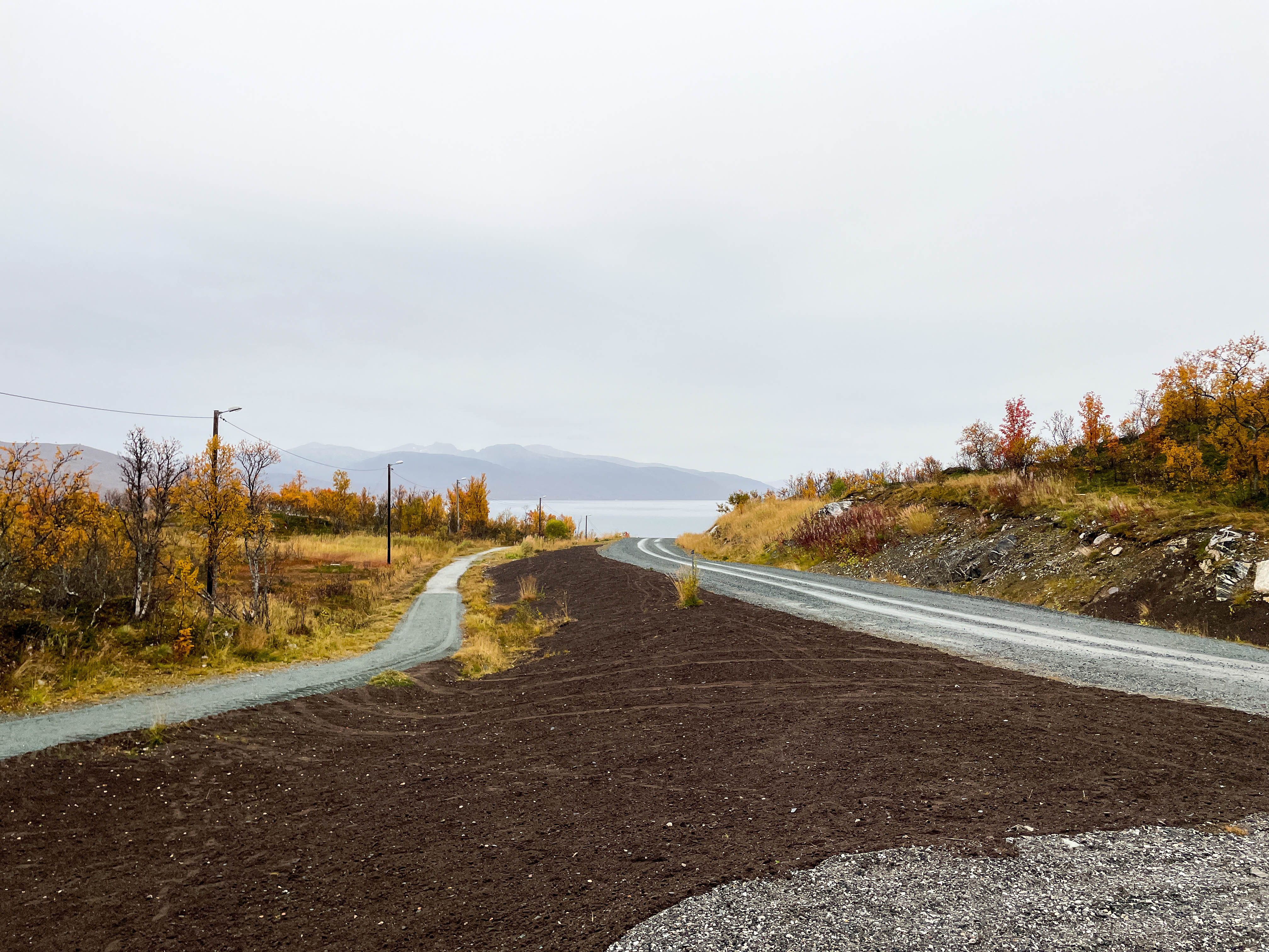 Det legges ti centimeter med vekstjord langs veien. Arealene tilsås deretter med fjellfrøblanding av fjelltimotei, rødvingel, engkvein og sausvingel.