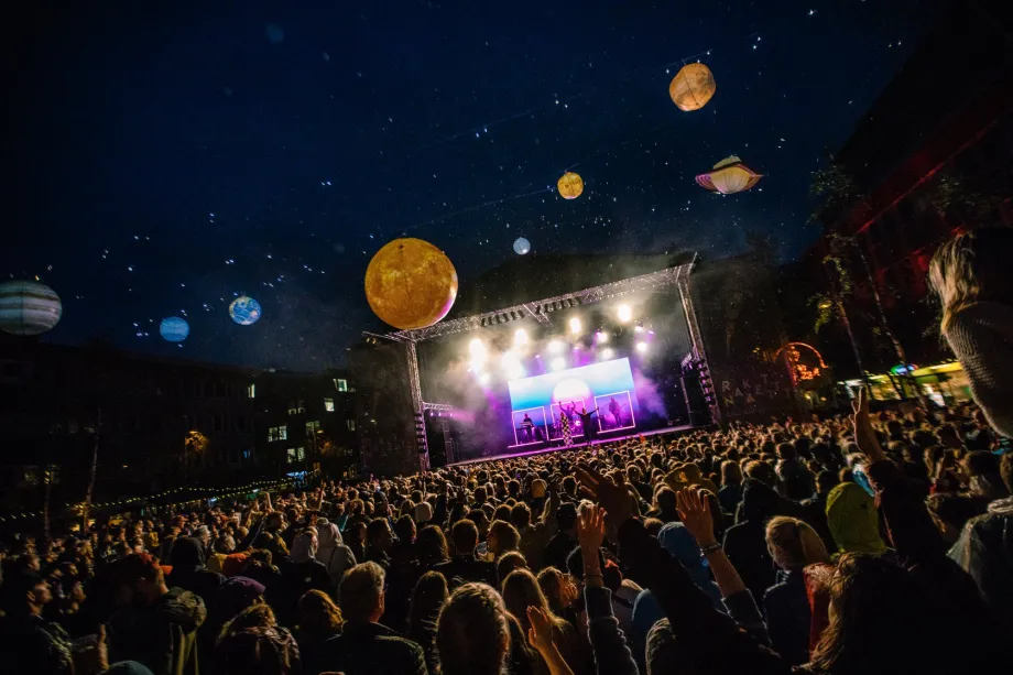 Rødt område: Festivalområdet er helt stengt for både kjørende og gående 12:00-02:00 torsdag, fredag og lørdag.