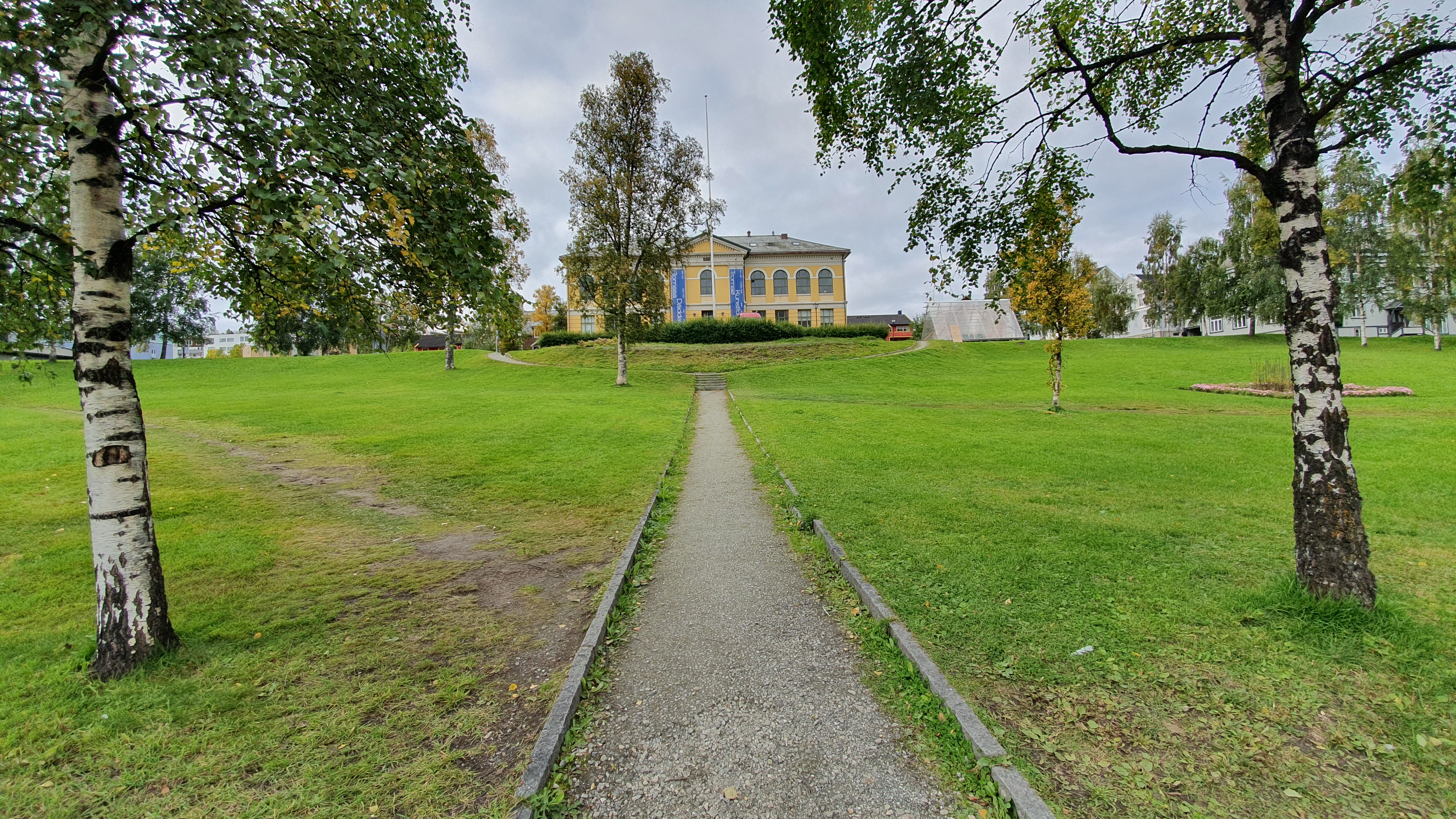 Det historiske parkanlegg på 8600 kvadratmeter sør i Tromsø sentrum er en stor grønn lunge med formale stianlegg, staudebed og buskplantinger som forholder seg til huset og aksen ned mot sundet (Strandvegen). Terrenget som skrår ned mot sundet har store arealer med gress og en stram trerekke som omkranser anlegget på tre sider.