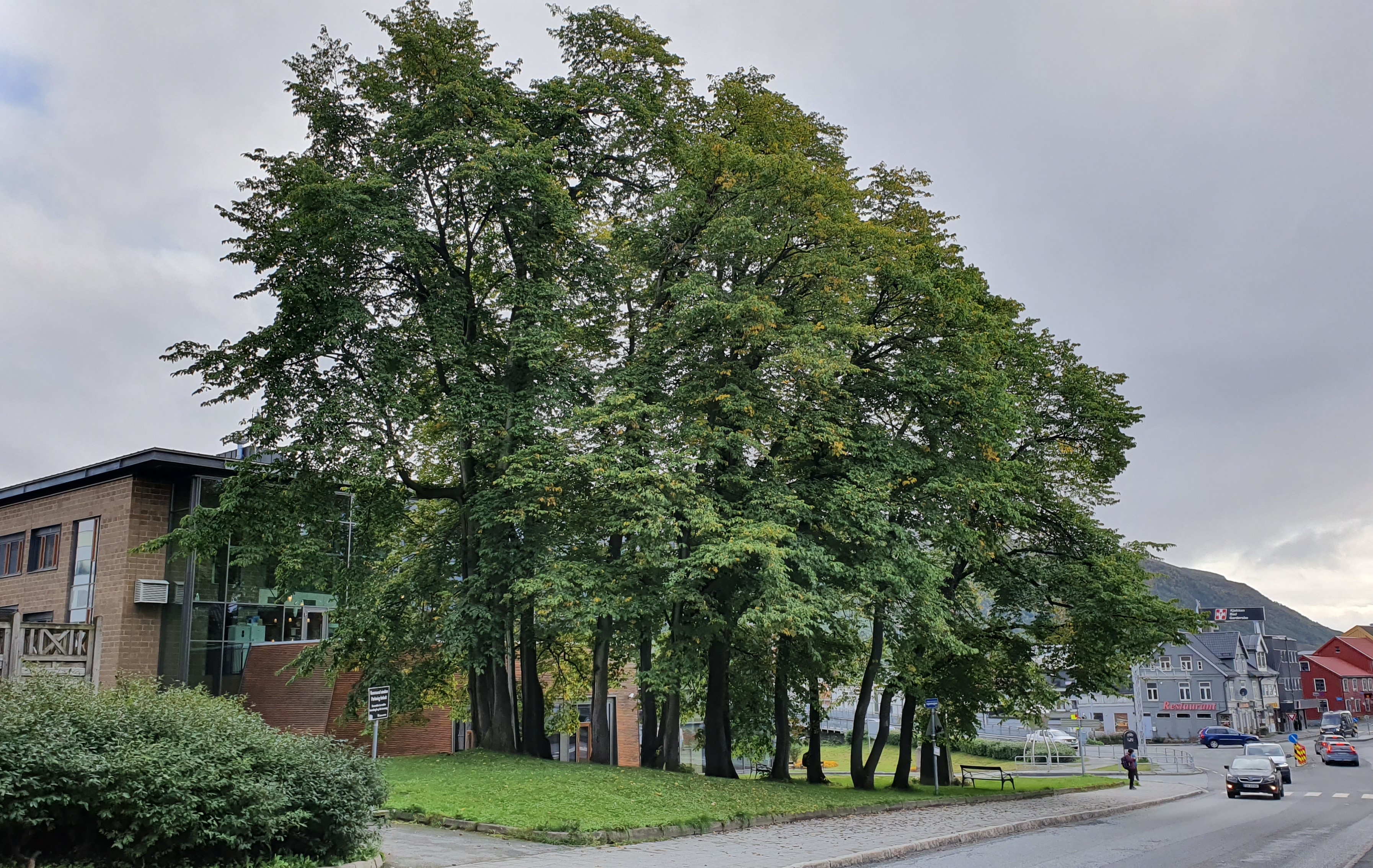 Sjelden og flott samling av almetrær som du finner på en 1000 m2 stor plass på oversiden av Tinghuset.