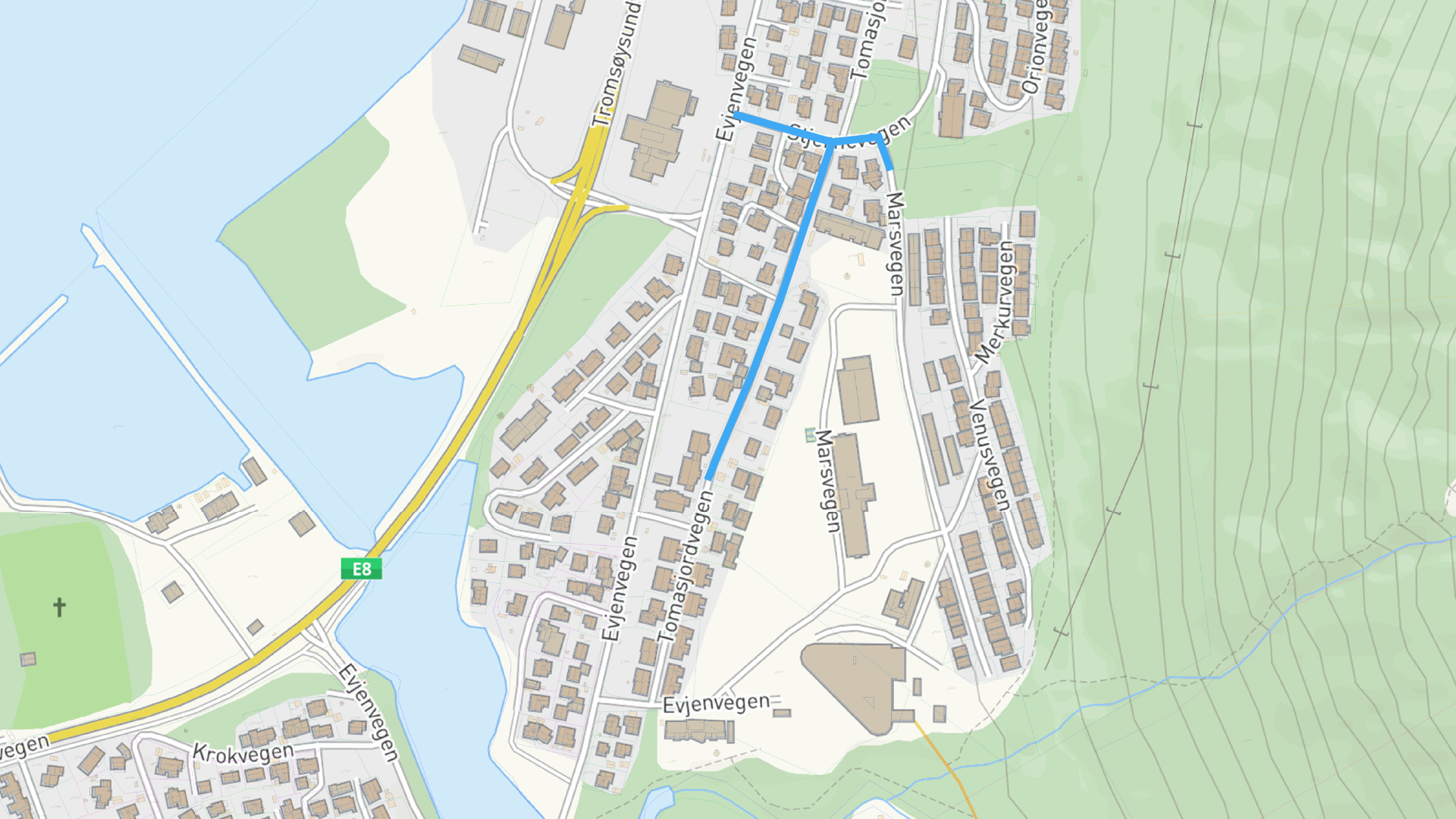 Vi skal legge ny vannledning fra Stjernevegen og 140 meter sørover i Tomasjordvegen. Gravearbeidene er startet og det medfører at Stejernevegen mellom Evjenvegen og Mars vegen er steng for alminnelig trafikk, unntatt rutebuss, fram til utgangen av mars 2026.