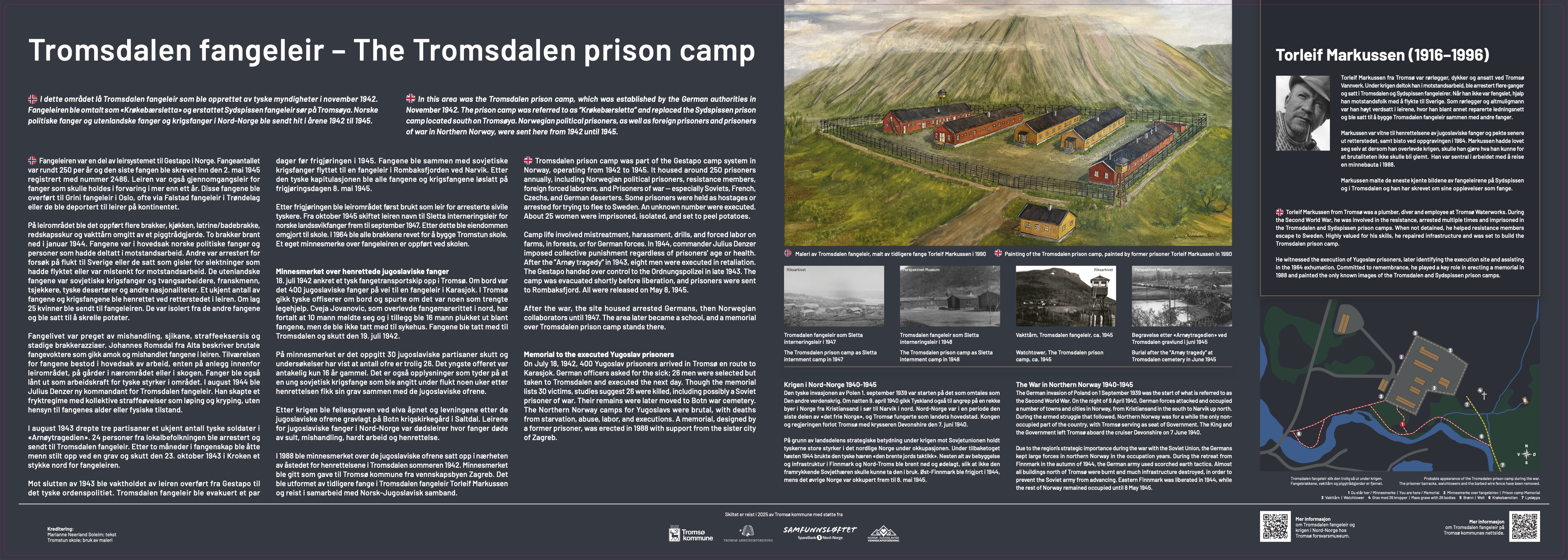 22. august 2025 avdukes en minnetavle for Tromsdalen fangeleir på stedet der fangeleiren lå. Minnetavlen er reist av Tromsø kommune i samarbeid med Tromsø Arbeiderforening, Samfunnsløftet (Sparebank1 Nord-Norge) og Norsk-jugoslavisk vennskapsforening.